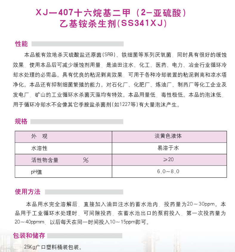 XJ-407 十六烷基二甲基(2-亞硫酸)乙基銨殺生劑(SS341XJ)